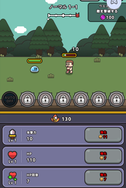 放置系とはいっても、手作業で強化しないといつまでたってもステージを進められないので、結果的にアプリに張り付くことになります。